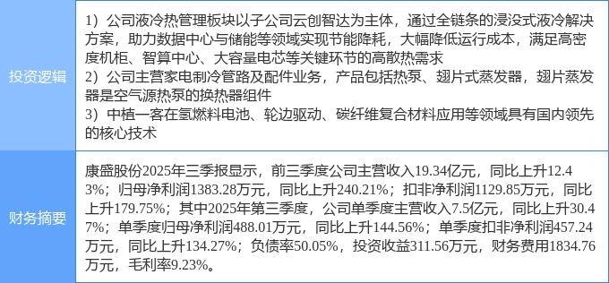 该股为液冷服务器,热泵,轮边电机概念热股,当日液冷服务器概念上涨2.26%,热泵概念上涨1.89%,轮边电机概念上涨1.36%。