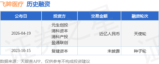 证券之星消息,根据天眼查APP于4月19日公布的信息整理,深圳市飞眸医疗器械技术有限公司天使轮融资,融资额近亿人民币,参与投资的机构包括元生创投,清科资本,清科产投,盈通联创。