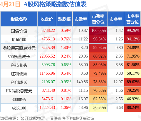 风格策略指数方面,国信价值的市盈率百分位较高,为100.0%。而成长100的市盈率百分位较低,为50.7%。