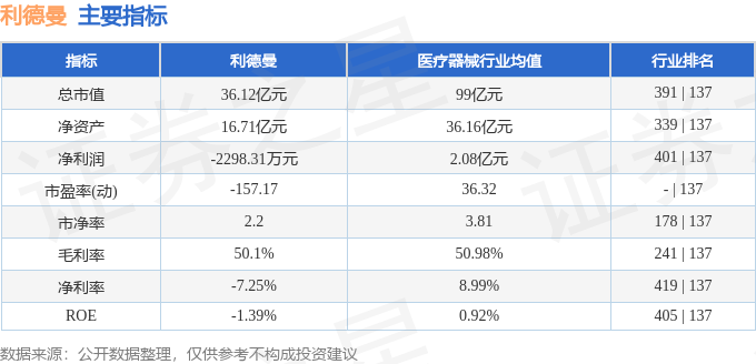 利德曼2025年年报显示,当年度公司主营收入3.26亿元,同比下降11.86%;归母净利润-2298.31万元,同比上升69.4%;扣非净利润-3146.54万元,同比上升67.72%;其中2025年第四季度,公司单季度主营收入7406.3万元,同比下降16.23%;单季度归母净利润-1584.83万元,同比上升79.19%;单季度扣非净利润-1690.41万元,同比上升81.42%;负债率5.94%,投资收益453.35万元,财务费用-652.41万元,毛利率50.1%。利德曼(300289)主营业务:体外诊断产品、诊断仪器、生物化学品等领域拥有核心竞争力,集研发、生产和销售。