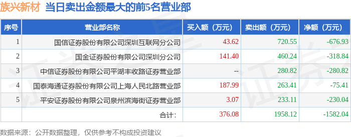 证券之星消息,沪深交易所2026年4月22日公布的交易公开信息显示,族兴新材(920078)因当日换手率达到20%的前5只股票登上龙虎榜。此次是近5个交易日内第4次上榜。
