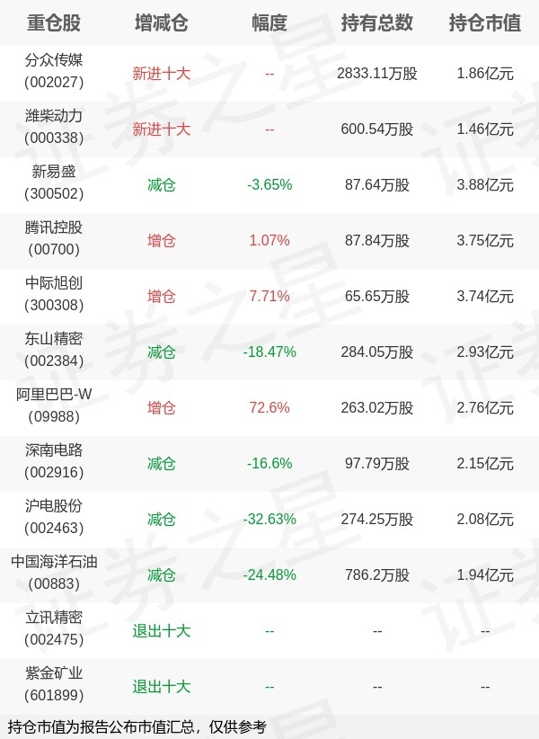 证券之星消息,4月22日东方红资产管理旗下苗宇管理的东方红睿泽三年持有期混合型基金公布一季报,近1年净值增长率91.65%。与上一季度相比,该基金前十大重仓股新增分众传媒,潍柴动力;其中新易盛持仓占比7.92%,为该基金第一大重仓股;立讯精密,紫金矿业等退出前十大重仓股;详细数据如下: