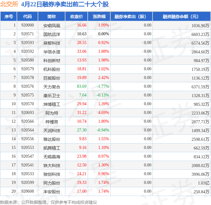 北交所融券净卖出前三分别为:None,前20具体见下表: