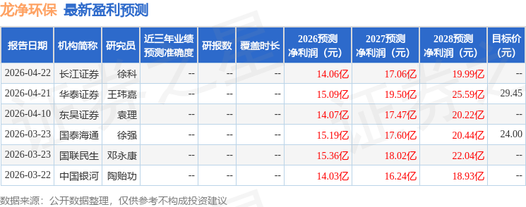 东吴证券股份有限公司曾朵红,袁理,任逸轩近期对龙净环保进行研究并发布了研究报告《2026年一季报点评:业绩超预期拟更名紫金龙净,紫金引领全球矿山绿能启航》,给予龙净环保买入评级。