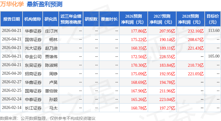 中银国际证券股份有限公司余嫄嫄,徐中良近期对万华化学进行研究并发布了研究报告《龙头穿越周期低谷,新材料板块加速放量》,给予万华化学买入评级。