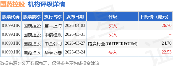 截至2026年4月23日收盘,国药控股(01099.HK)报收于19.56港元,下跌1.36%,成交量564.41万股,成交额1.11亿港元。投行对该股的评级以买入为主,近90天内共有3家投行给出买入评级,近90天的目标均价为24.64港元。第一上海最新一份研报给予国药控股买入评级,目标价26.7港元。