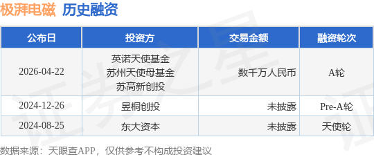 【投融资动态】极湃电磁A轮融资,融资额数千万人民币,投资方为英诺天使基金、苏州天使母基金等