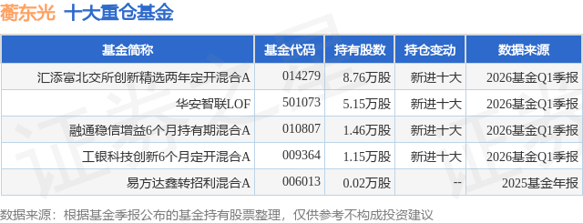 重仓蘅东光的公募基金请见下表: