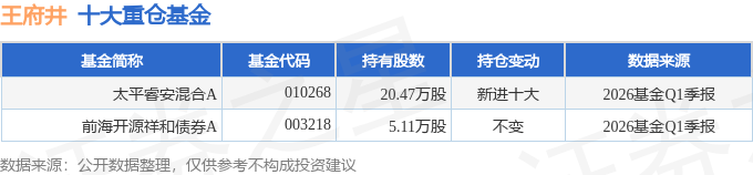 持有王府井最多的基金为太平睿安混合A,目前规模为2.02亿元,最新净值0.8988(4月23日),较上一交易日下跌0.09%,近一年上涨5.32%。该基金现任基金经理为苏大明 杨行远。