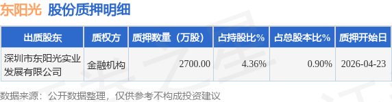 证券之星消息,东阳光(600673)4月25日公开信息显示,股东深圳市东阳光实业发展有限公司向金融机构合计质押2700.0万股,占总股本0.9%。质押详情见下表:
