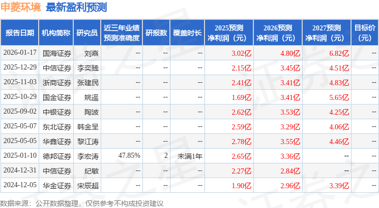 最新盈利预测明细如下: