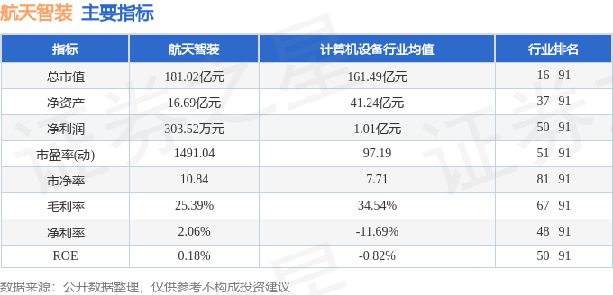 该股主要指标及行业内排名如下: