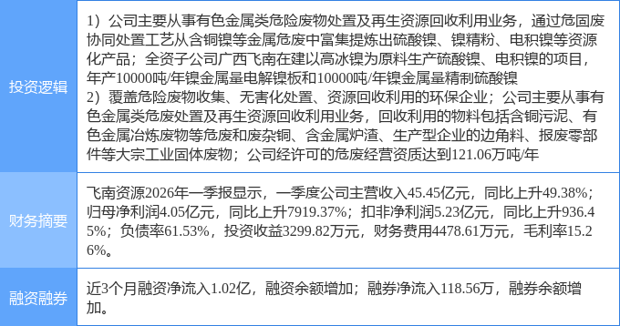 4月27日飞南资源涨停:有色 · 镍,固废处理,环保概念热股