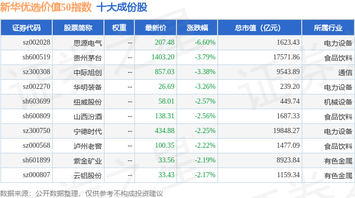 新华优选价值50(989004)指数十大成份股详情如下: