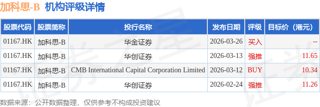 截至2026年4月27日收盘,加科思-B(01167.HK)报收于7.11港元,下跌5.33%,成交量226.33万股,成交额1617.92万港元。投行对该股的评级以强推为主,近90天内共有2家投行给出强推评级,近90天的目标均价为11.08港元。华金证券最新一份研报给予加科思-B买入评级。