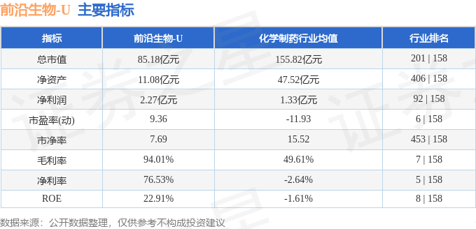 该股主要指标及行业内排名如下: