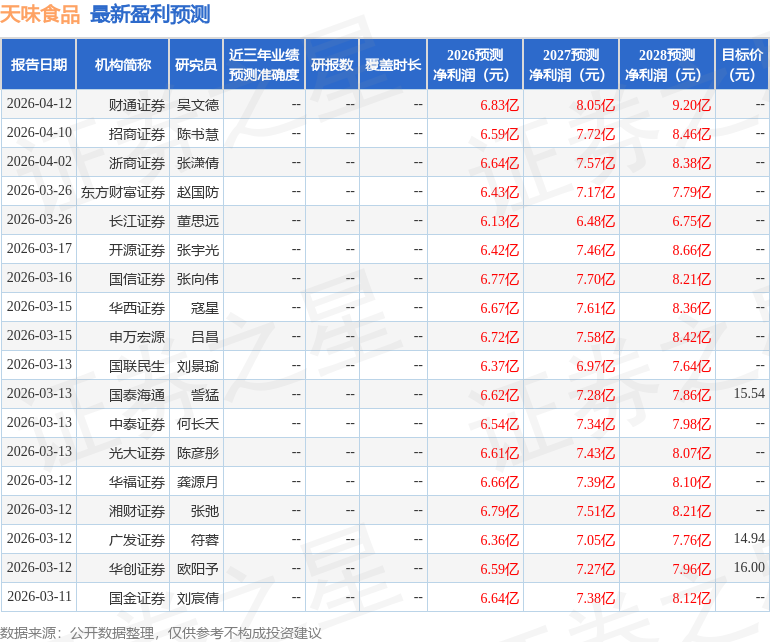 最新盈利预测明细如下: