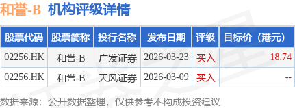 截至2026年4月28日收盘,和誉-B(02256.HK)报收于13.61港元,下跌2.79%,成交量90.8万股,成交额1246.41万港元。投行对该股的评级以买入为主,近90天内共有2家投行给出买入评级,近90天的目标均价为18.74港元。广发证券最新一份研报给予和誉-B买入评级,目标价18.74港元。