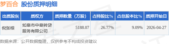 证券之星消息,梦百合(603313)4月29日公开信息显示,股东倪张根向如皋市中皋转贷服务有限公司合计质押5188.07万股,占总股本9.09%。质押详情见下表: