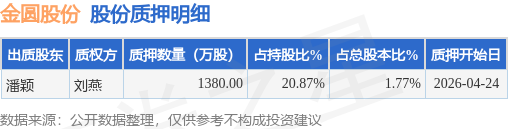 证券之星消息,金圆股份(000546)4月29日公开信息显示,股东潘颖向刘燕合计质押1380.0万股,占总股本1.77%。质押详情见下表: