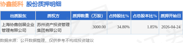 证券之星消息,协鑫能科(002015)4月29日公开信息显示,股东上海协鑫创展企业管理有限公司向苏州资产投资管理集团有限公司合计质押3000.0万股,占总股本1.85%。质押详情见下表: