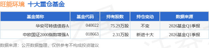 持有旺能环境最多的基金为华安可转债债券A,目前规模为15.86亿元,最新净值2.245(4月28日),较上一交易日下跌0.27%,近一年上涨15.13%。该基金现任基金经理为周益鸣 卢维捷。