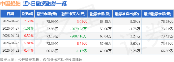 中国船舶融资融券信息显示,融资方面,当日融资买入11.62亿元,融资偿还8.61亿元,融资净买入3.01亿元,净买入额两市排名第3。融券方面,融券卖出13.26万股,融券偿还3.87万股,融券余量68.45万股,融券余额2828.49万元。融资融券余额76.28亿元。