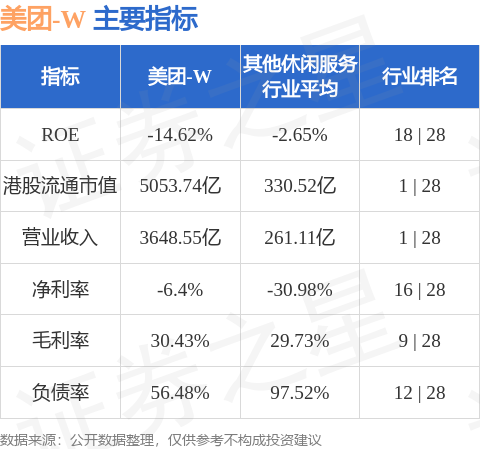 美团-W港股市值5053.74亿港元,在其他休闲服务行业中排名第1。主要指标见下表: