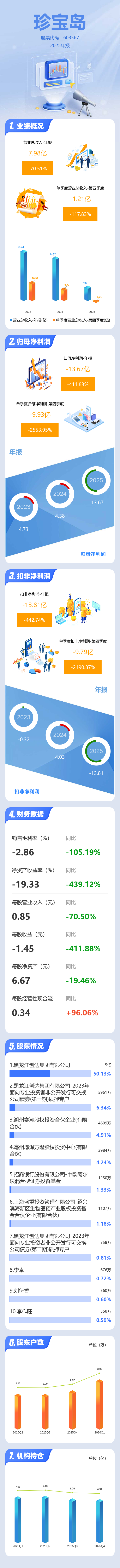 证券之星消息,珍宝岛2025年年报显示,当年度公司主营收入7.98亿元,同比下降70.51%;归母净利润-13.67亿元,同比下降411.84%;扣非净利润-13.81亿元,同比下降442.75%;其中2025年第四季度,公司单季度主营收入-1.21亿元,同比下降117.83%;单季度归母净利润-9.93亿元,同比下降2553.95%;单季度扣非净利润-9.79亿元,同比下降2190.87%;负债率40.95%,投资收益-1201.0万元,财务费用1.04亿元,毛利率-2.86%。