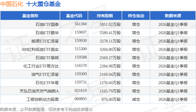 持有中国石化最多的基金为石油ETF国泰,目前规模为45.84亿元,最新净值1.5908(4月29日),较上一交易日上涨1.79%,近一年上涨59.37%。该基金现任基金经理为苗梦羽。