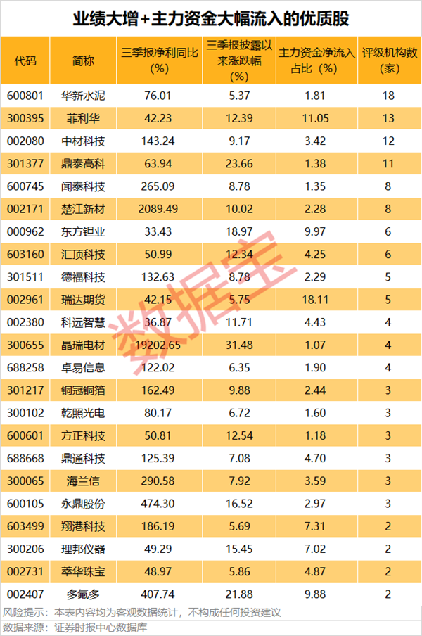 (原标题:业绩暴增+主力资金大幅流入!23只优质股“浮出水面”)