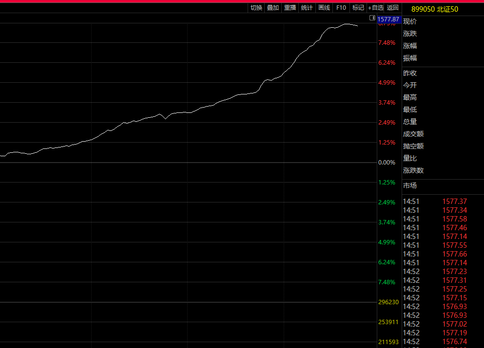 10月29日,北交所个股午后持续走强,数字人、锦华新材、三祥科技等多股涨停,利通科技、华信永道等20余只个股涨超20%。截至收盘,北证50指数大涨8.35%,创下年内单日最大涨幅,成交额显著放量。
