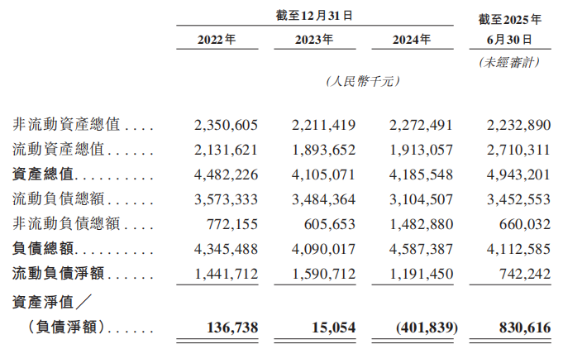 大幅减资背后,是享道出行长期面临的财务压力。2022年至2024年及2025年上半年(下称“报告期”),享道出行流动负债净额分别为14.42亿元、15.91亿元、11.91亿元、7.42亿元,公司主要靠银行借款维持经营。此外,公司2024年末的负债净额为4.02亿元,主要是由于年内亏损所致。