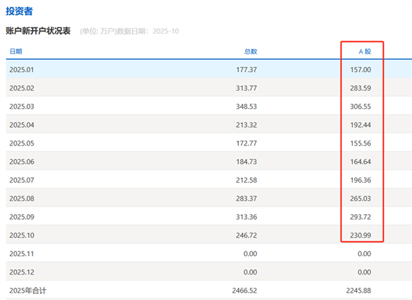至此,今年前10个月A股新开户数达到2245.88万户,同比增长10.57%。