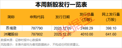 根据发行安排,本周暂有2只新股申购,昂瑞微、沐曦股份均在本周五可申购。