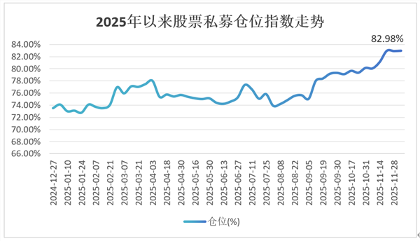 12月12日,记者从私募排排网获悉,截至12月5日,股票私募仓位指数高达82.98%,又一次刷新今年以来最高纪录,并已连续三周稳居82%以上的高位区间。