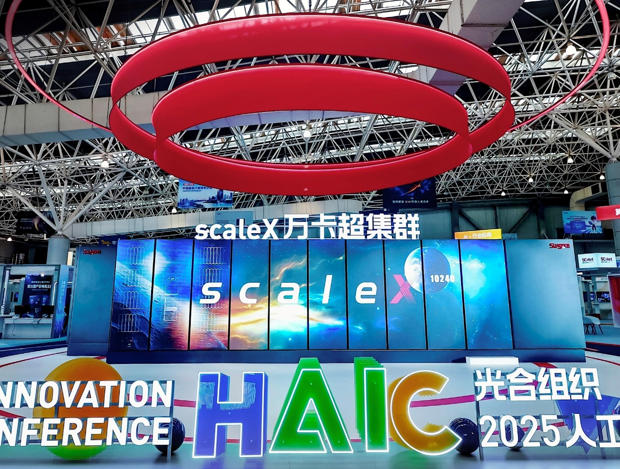 2025年12月18日,在昆山举行的光合组织2025人工智能创新大会(HAIC2025)上,中科曙光发布并展出了全球领先的大规模智能计算系统——scaleX万卡超集群,这也是国产万卡级AI集群系统首次以真机形式亮相。