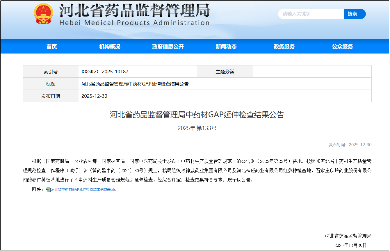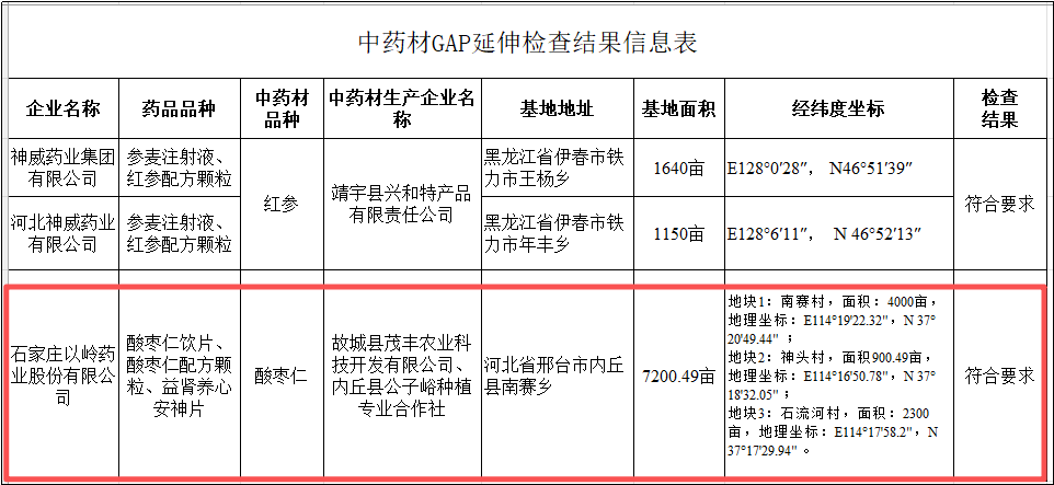 12月30日,河北省药品监督管理局发布《河北省药品监督管理局中药材GAP延伸检查结果公告》,以岭药业酸枣仁种植基地通过河北省药监局组织的GAP延伸检查,综合评定符合要求。这是全国第一个通过GAP延伸检查的酸枣仁基地。