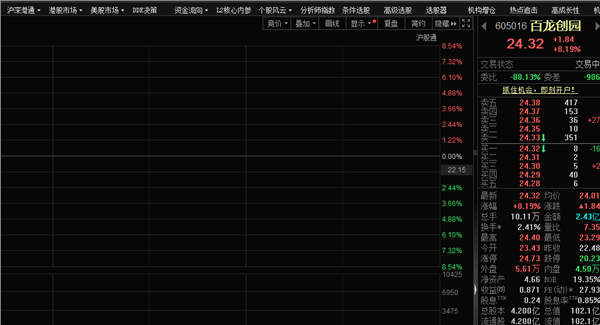 1月23日,百龙创园(605016)股价大涨,截至发稿,股价涨幅超8%。