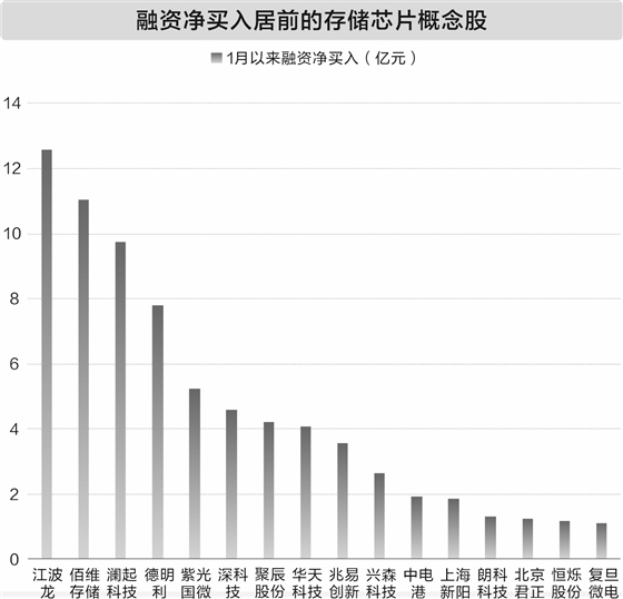 资金面上,融资客近期大手笔加仓存储芯片概念股。据数据宝统计,截至1月23日收盘,1月以来获融资净买入超1亿元的存储芯片概念股达到16只,其中江波龙、佰维存储、澜起科技、德明利、紫光国微获融资净买入超5亿元。