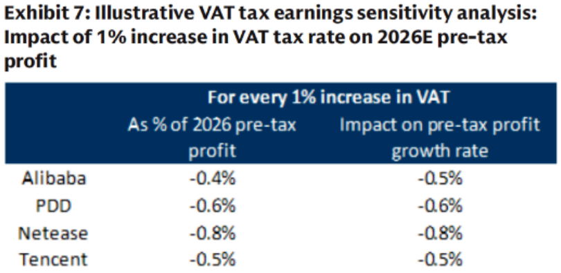 依据高盛分析显示,增值税率每提升1个百分点,头部互联网公司税前利润影响仅0.4%-0.8%。以腾讯为例,1个百分点的税率变动仅影响其利润增长0.5%。