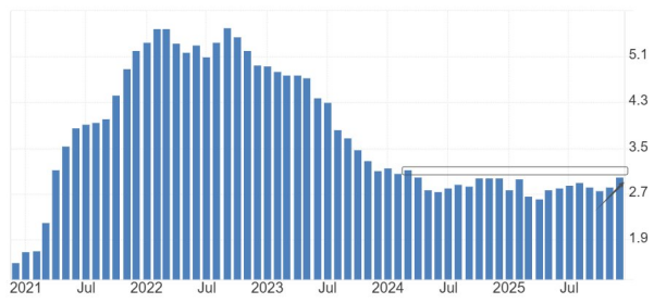 1月份核心PCE年率的预期值为3%,与前值持平。历史数据看,PCE数据已经连续两个月升高,3%的水平是2024年5月份以来的最高值。