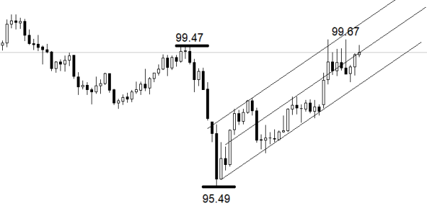 行情方面,日线级别,美元指数处于上升通道内部,没有出现明显的筑顶结构,上涨波段在通道内部延续的概率较高。中期低点在95.49,中期高点在99.47,当前上涨波段的最高点是99.67,已经突破中期高点,未来将寻找新的中期高点。