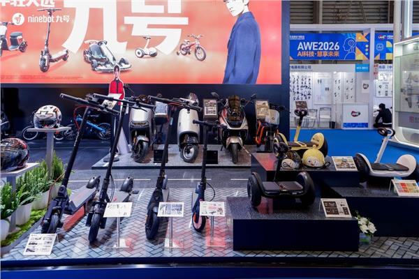 3月12日,以“AI科技,慧享未来”为主题的中国家电及消费电子博览会(AWE 2026)在上海正式开幕,汇聚全球1200余家消费电子与科技企业同台亮相。九号公司(Segway-Ninebot)携多款智能出行产品首次参展,凭借电动滑板车、平衡车、卡丁车及智能两轮电动车组成的全品类产品矩阵,集中展现了在智能短途出行领域的前沿技术与完整布局。
