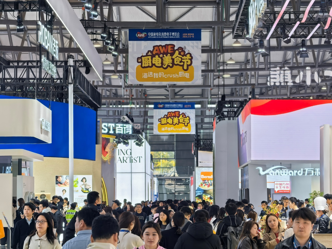 3月15日,2026年中国家电及消费电子博览会(AWE2026)圆满闭幕。本届展会历时四天,共吸引了1200余家国内外头部企业与创新力量,全面勾勒人工智能驱动下的智慧生活新图景。在上海新国际博览中心展区,现场人气火爆、观展氛围热烈,据AWE组委会初步统计,新国际展区观众人数较上届预计增长30%以上。