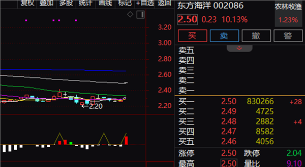 盘面上,海洋经济相关概念早盘大涨,水产指数领涨,中水渔业一度涨停,獐子岛、国联水产等跟涨。深海科技概念涨幅居前,东方海洋(002086)、神开股份等涨停,其中东方海洋封单量一度超80万手;巨力索具、亚星锚链等均有较大涨幅。