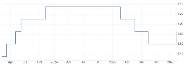 英国央行的情况比较特殊,因为英国央行实际上还处于降息通道之内。2025年12月份英国央行刚刚降息了25基点。之所以市场人士认为英国央行将会在三月份的利率决议之上维持不变,是因为伊朗封锁霍尔木兹海峡导致国际油价突破100美元每桶,这是潜在引发高通胀的关键因素。英国央行选择按兵不动是最理性的选择。