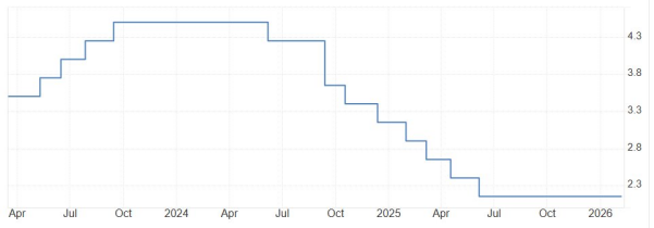 对于瑞士央行来说,同样是从2025年开始,瑞士央行不再降息。与欧央行不同的是,瑞士央行是将基准利率降至0%之后选择不再降息。瑞士的最新核心通胀率为0.2%,创出2021年8月份以来的新低,距离通货紧缩仅剩0.3个百分点。瑞士央行实际上还具备降息的意愿,但是因为已经降至地板价,所以没有办法在继续降息。