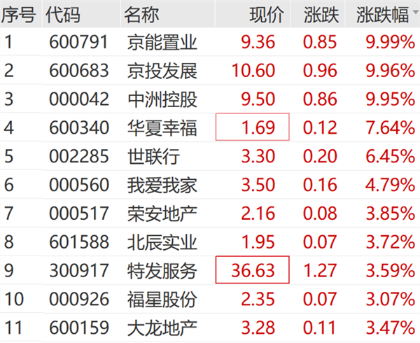 房地产板块继续走强