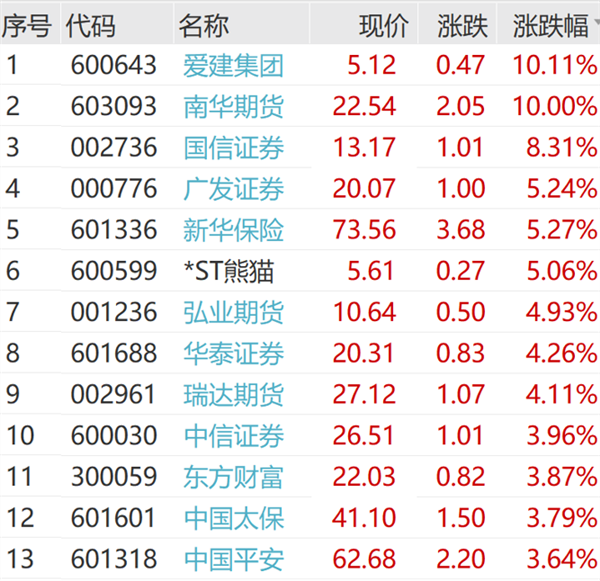 3月17日上午,A股大金融板块整体走强。截至发稿,爱建集团、南华期货双双涨停,国信证券、广发证券、华泰证券等券商股涨幅居前。